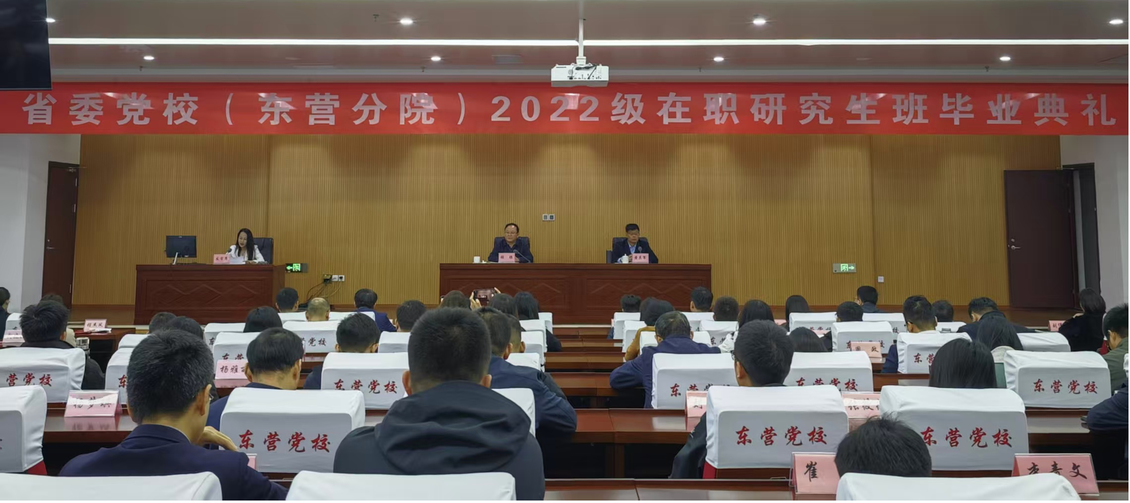 10月24日上午,我校举行2022级省委党校(东营分院)在职研究生班毕业典礼,市委党校副校长张鹏出席并讲话,业教处处长黄其军主持会议。