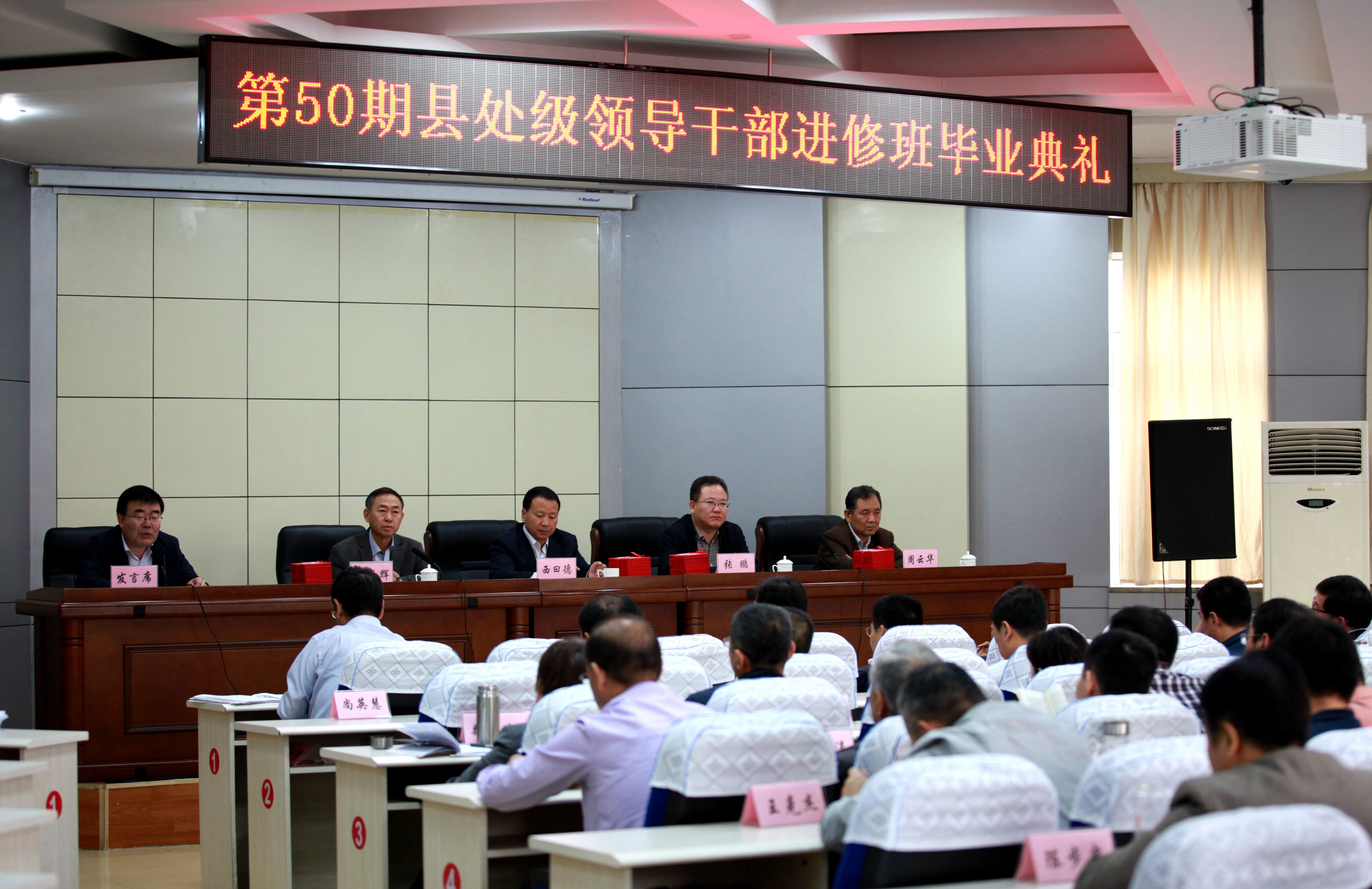 毕业典礼上,第50期县处级领导干部进修班班长进行了总结发言,四位学员代表畅谈了学习体会,校领导为学员颁发了毕业证书。