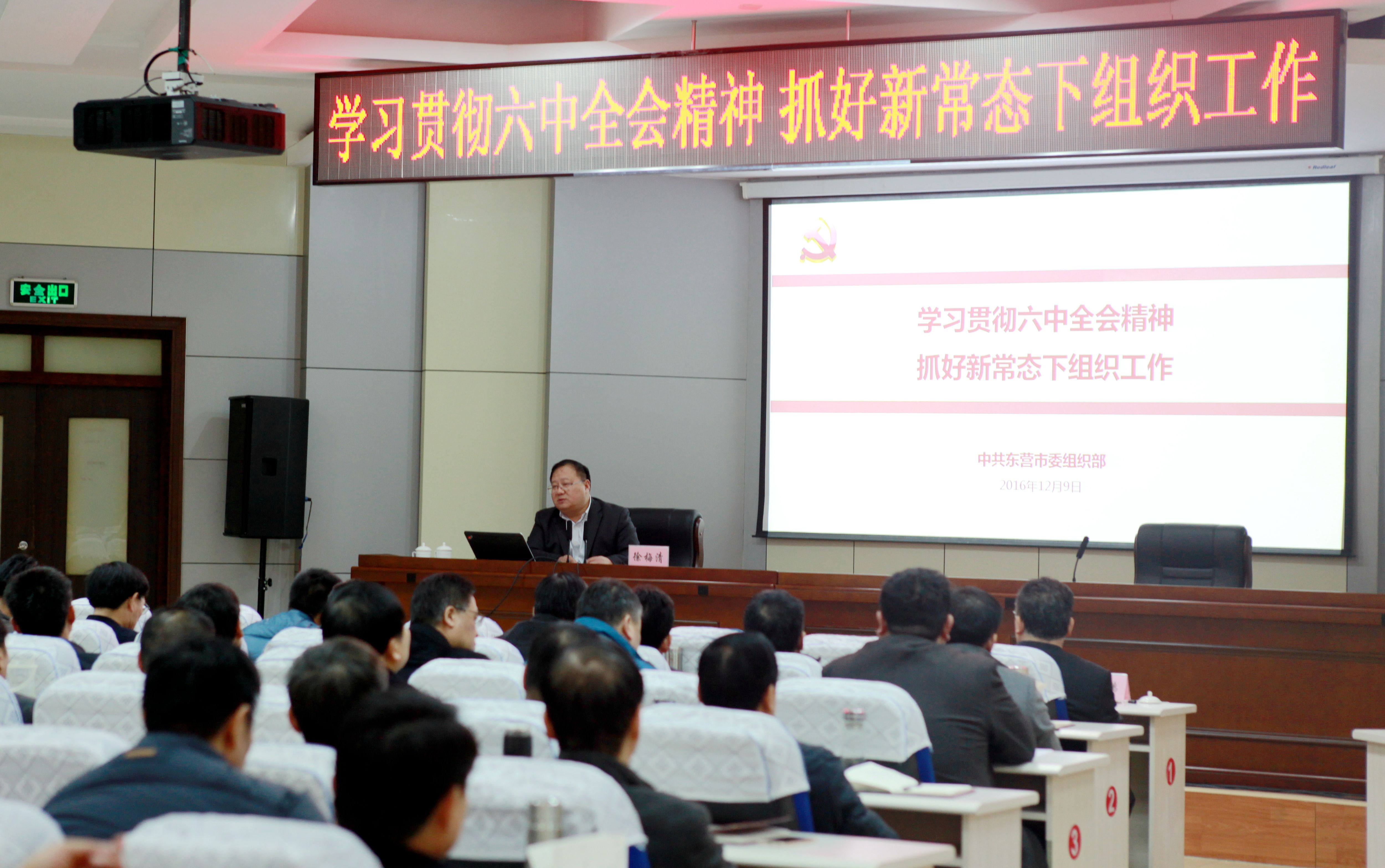 徐梅清以“学习贯彻六中全会精神,抓好新常态下组织工作”为题,分析了当前的形势与任务,介绍了《关于新形势下党内政治生活的若干准则》的历史与时代背景,指出党员领导干部要深刻把握《准则》制定的内涵要求,充分认识《准则》制定的重大意义,认真抓好新常态下组织工作。最后,着重针对“严肃换届风气监督”问题进行了讲解。整场报告内容精深,着力点清晰,是党员领导干部学习十八届六中全会精深,研习《准则》的一堂生动好课,对做好新常态下的组织工作意义重大。