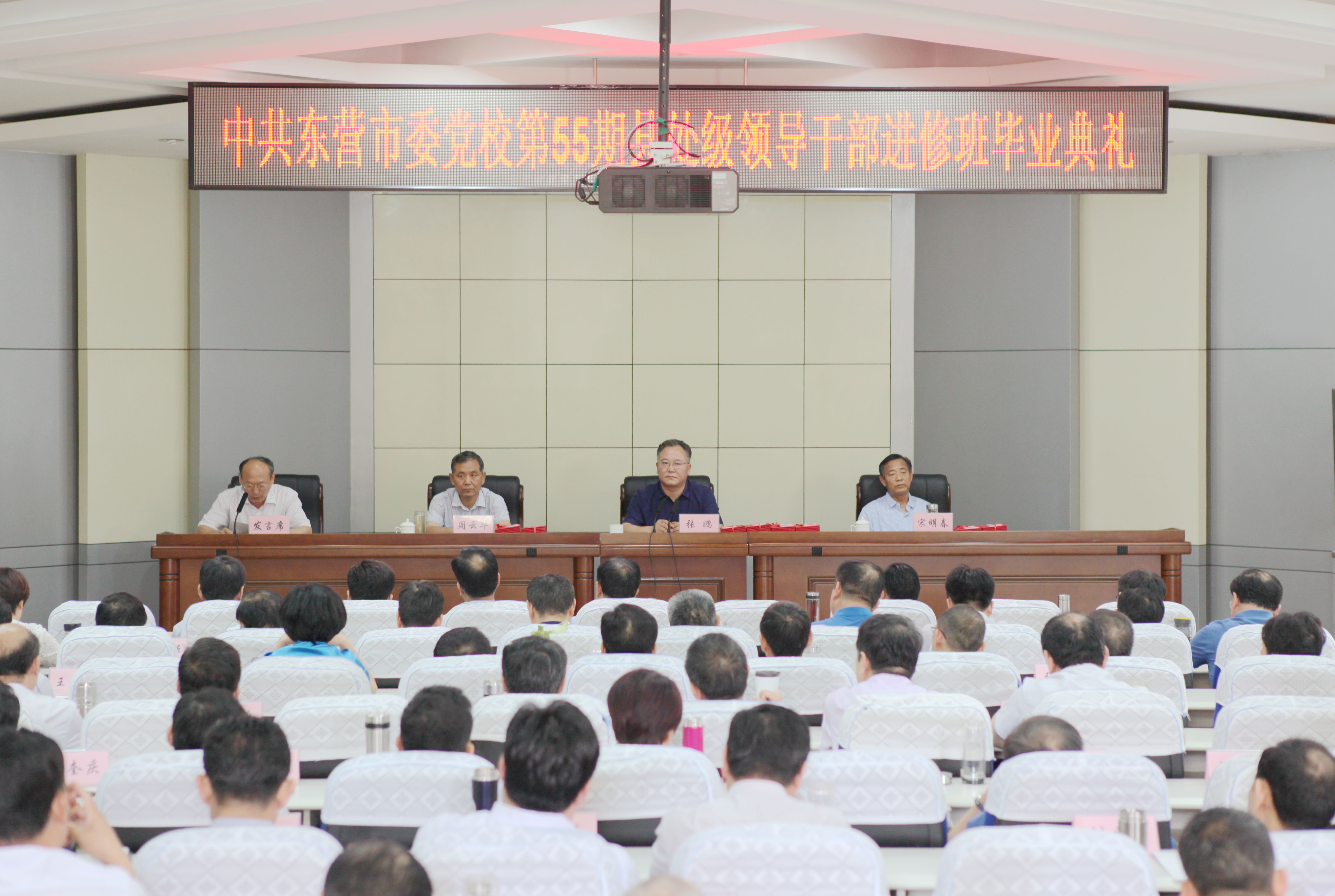 6月15日上午,我校举行第55期县处级领导干部进修班毕业典礼,副校长张鹏出席典礼并讲话,校务委员、工会主席宋明春,调研员周云华出席典礼。