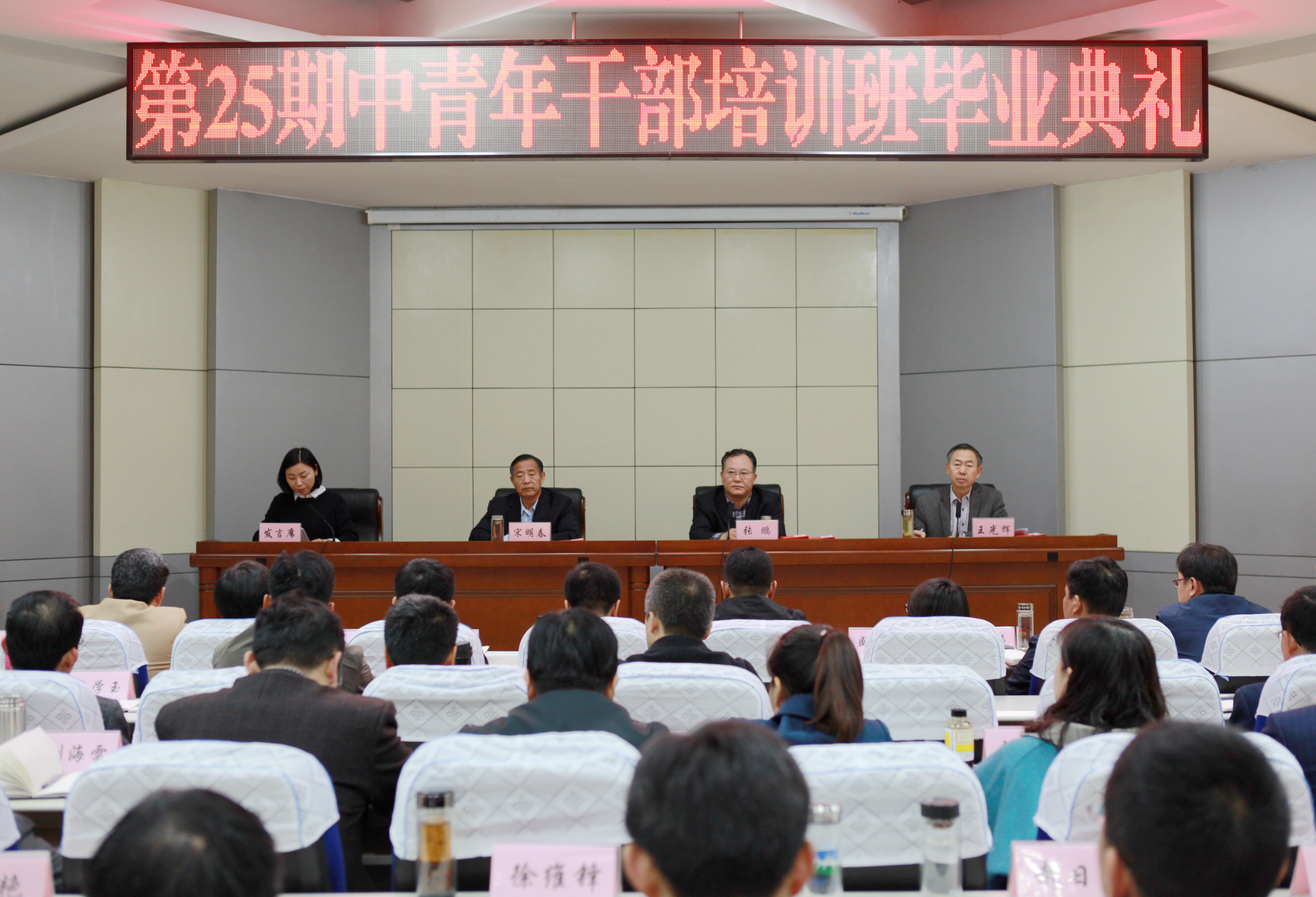 毕业典礼上,第25期中青年干部培训班班长进行了总结发言,四位学员代表畅谈了学习体会,校领导为学员颁发了毕业证书。第25期中青年干部培训班全体学员、教学管理人员共40余人参加了典礼。