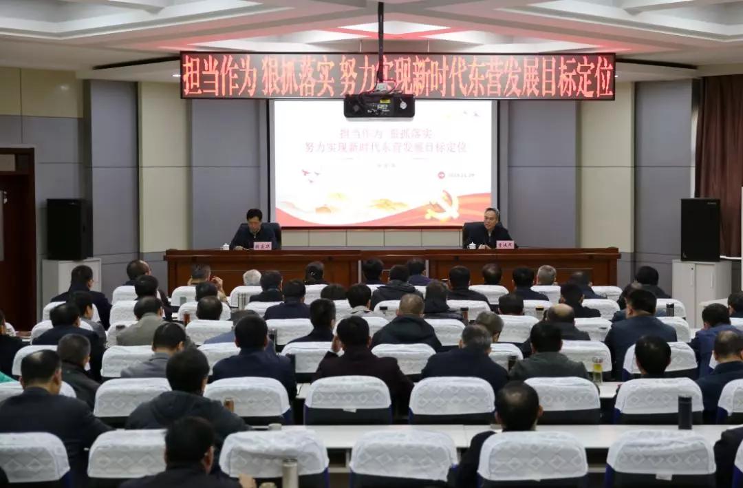 张庆华以“担当作为、狠抓落实,努力实现新时代东营发展目标定位”为题,紧密结合党的十九届四中全会、市委六届四次全会精神和“不忘初心、牢记使命”主题教育,对如何在推进东营实现高质量发展中担当作为、狠抓落实,讲了很好的意见,提出了明确要求。报告站位高远、内容丰富、脉络清晰、分析透彻,对广大党员领导干部进一步做好当前和今后工作具有重要指导意义。