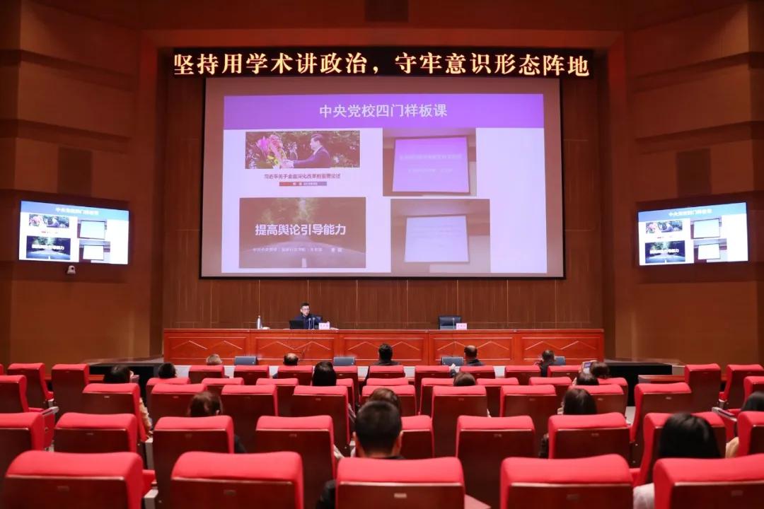 专题报告会结束后,给市委党校全体教师及教学管理人员作意识形态专项辅导,对“用学术讲政治”的提出背景、中央党校关于“用学术讲政治”精品课要求、如何“用学术讲政治”等进行深入阐释。强调“用学术讲政治”是一名党校教师授课的责任使然,要站稳党校课堂,让理论的光芒润物无声的照进党员干部心理,发挥党校优势,站稳意识形态阵地。