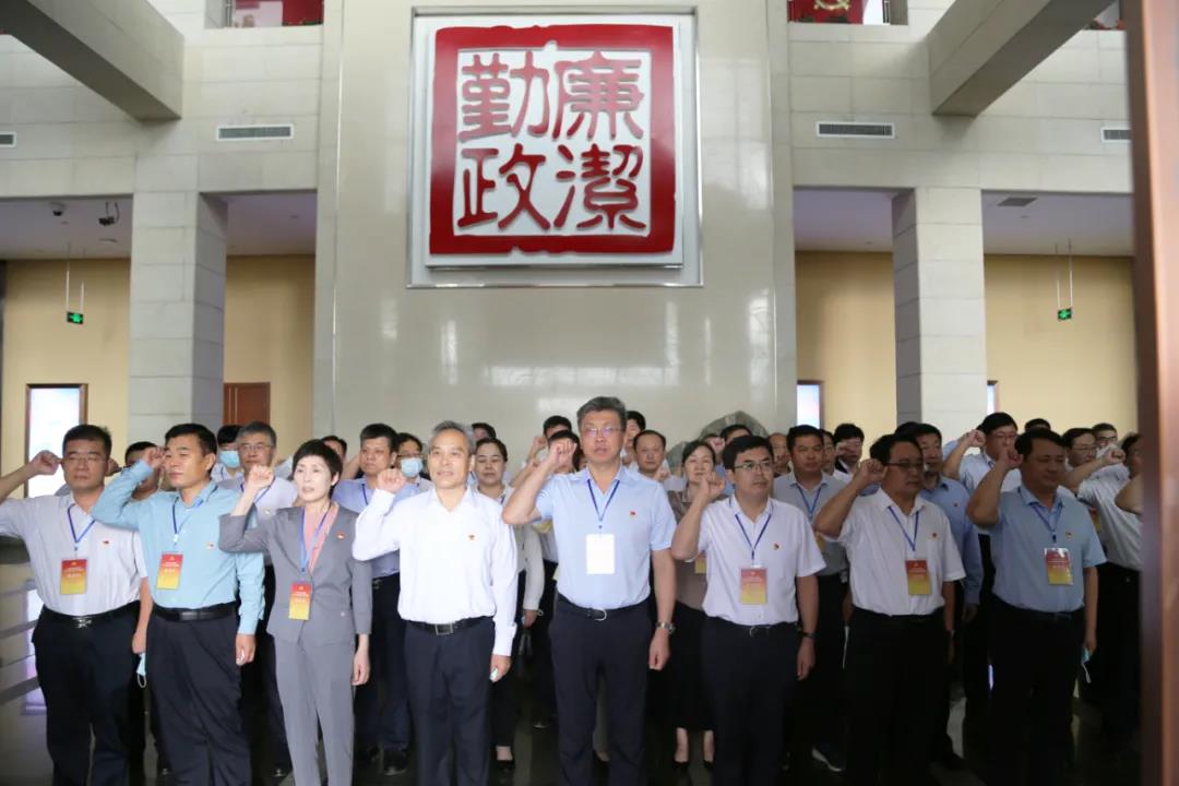 在廉政教育展厅,全体学员首先重温入党誓词,铭记党员责任和使命。随后,在讲解员引导下,大家依次参观了正面教育厅的5个展区和警示教育厅的3个展区。通过图片、文字、视频等资料,大家共同回顾了中国共产党反腐倡廉的光辉历程,聆听了党和国家领导人关于党风廉政建设的重要论述,了解了党的十八大以来反腐新形势和新成就。通过一个个触目惊心、鲜活生动的案例,全体学员深刻感受到了少数领导干部放松自我要求、走向违法犯罪后给国家、社会及家庭带来的巨大危害,更加坚定了明纪律、知敬畏、守底线的决心。