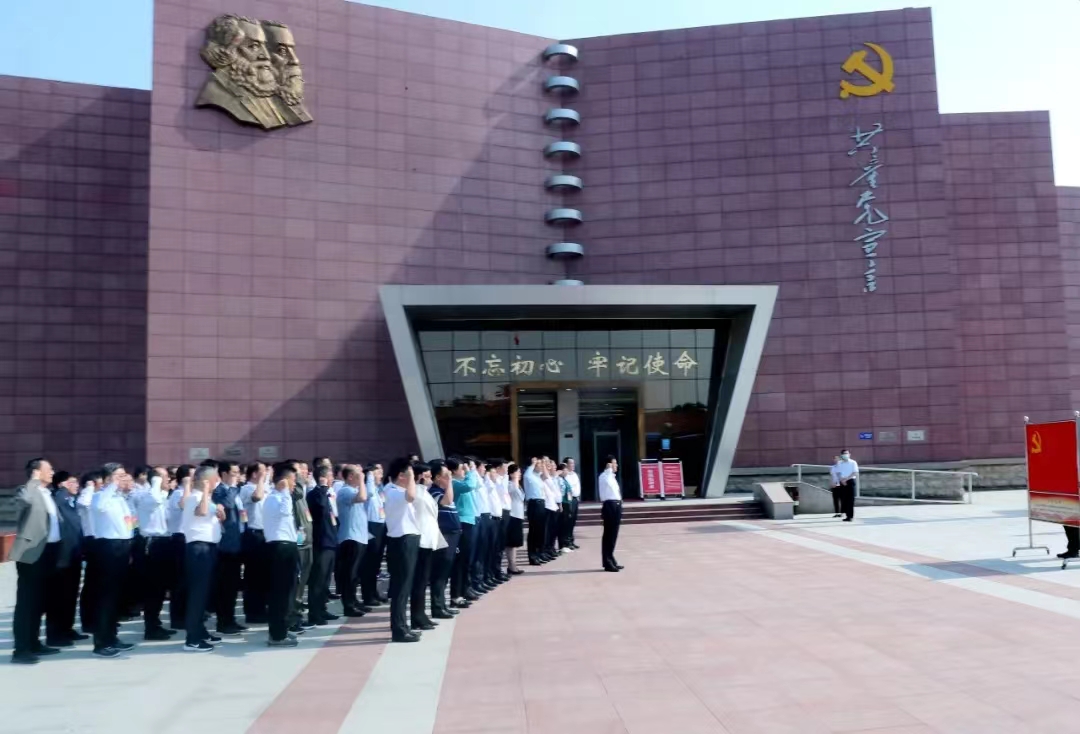在《共产党宣言》陈列馆门前举行了庄重的宣誓仪式,全体学员举起右拳,面对鲜红的党旗庄严宣誓:“我志愿加入中国共产党,拥护党的纲领,遵守党的章程,履行党员义务,执行党的决定……”句句铿锵的誓言,表达了党员干部们为共产主义奋斗终身的坚定理想信念。