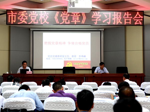 按照我校“两学一做”学习教育安排部署,6月2日上午,我校举办党章学习报告会,并开展了党章知识测试。校委成员及全体党员干部共60余人参加了报告会和测试。