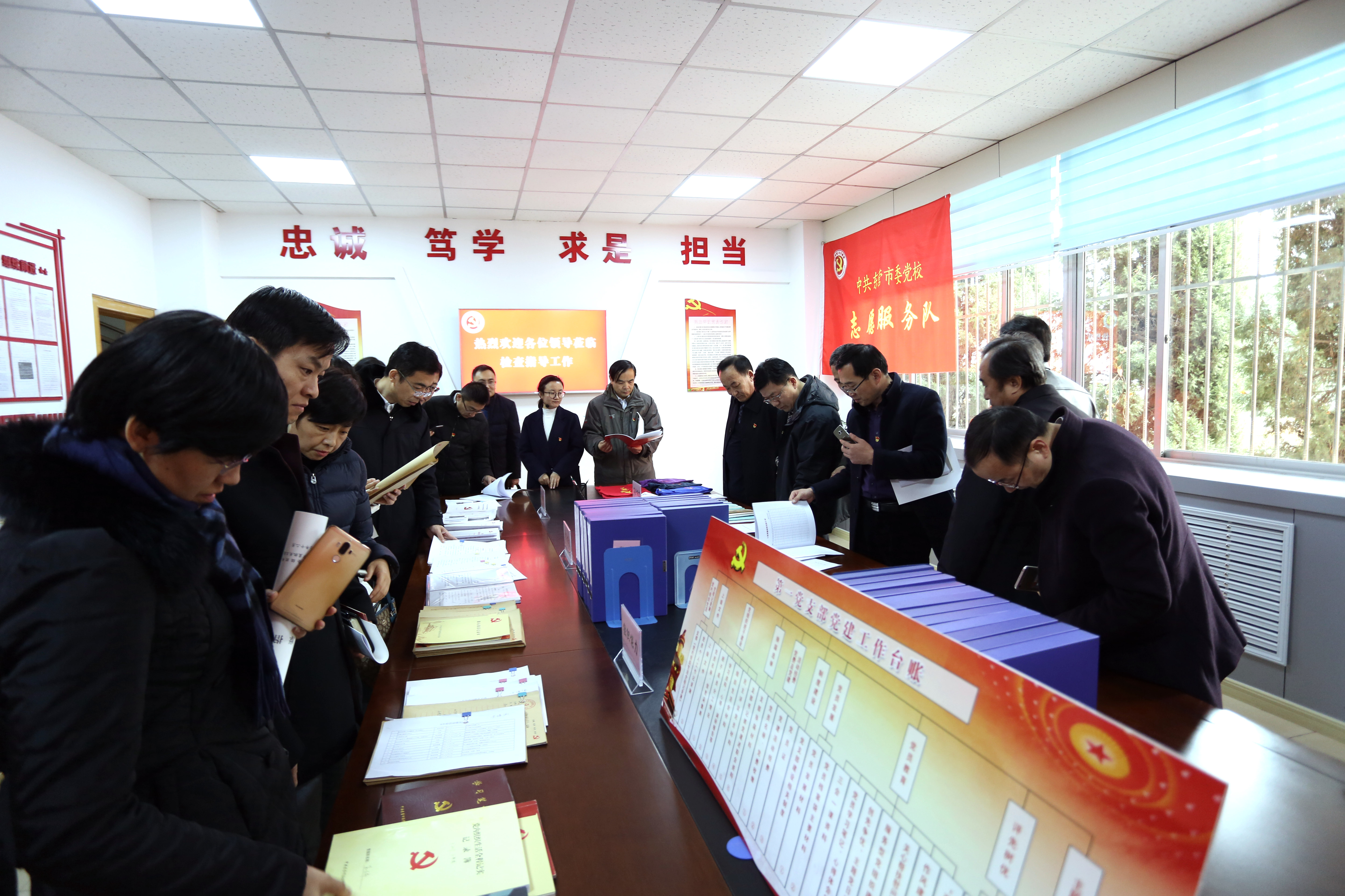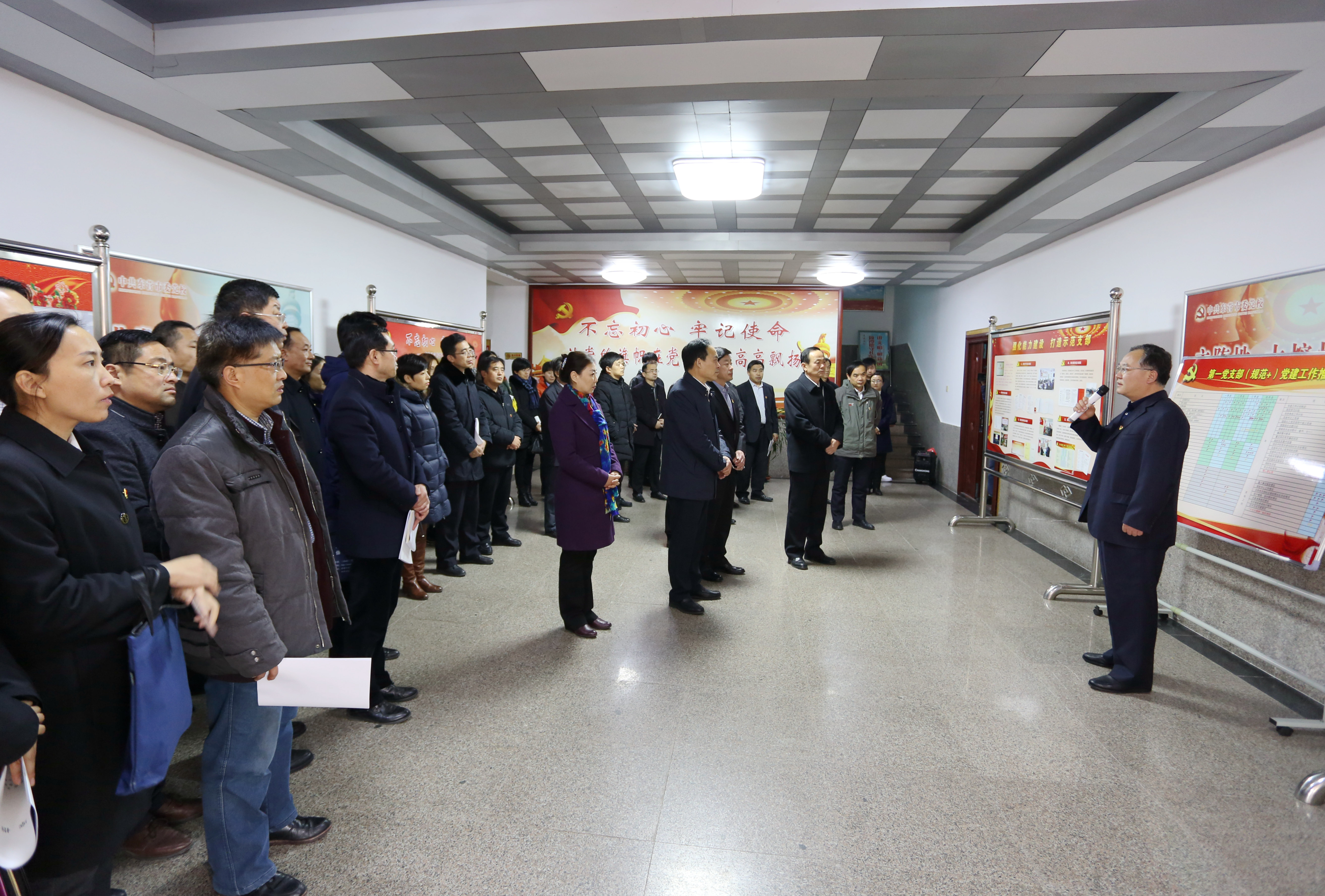 12月14日下午,市直机关工委书记何宏强、市委党员教育中心主任王兴法,带领市级党员领导干部所在支部书记、所在单位的机关党委专职副书记共50余人到我校第一党支部进行了现场观摩,听取了我校关于机关党建“五化”统筹推进、示范支部创建工作开展情况,实地查看了党员活动室、党建图书室和党员阅览室。常务副校长李廷华、副校长张鹏陪同观摩。