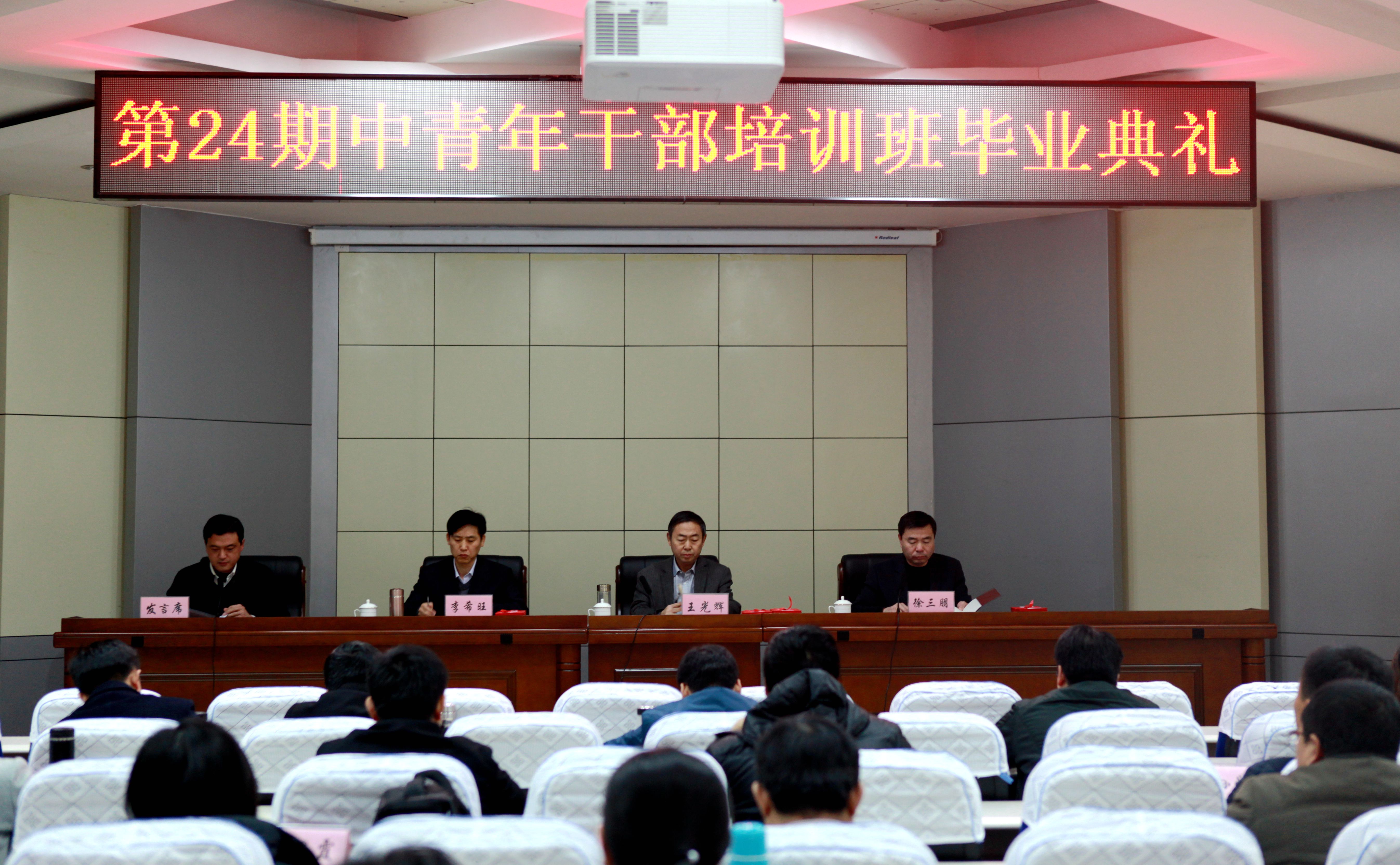 12月2日上午,我校举行第24期中青年干部培训班毕业典礼。副校长王光辉出席典礼并讲话,教务处处长徐三朋主持毕业典礼,学管处处长李希旺出席典礼。第24期中青年干部培训班班长进行了总结发言,四位学员代表交流了学习体会。