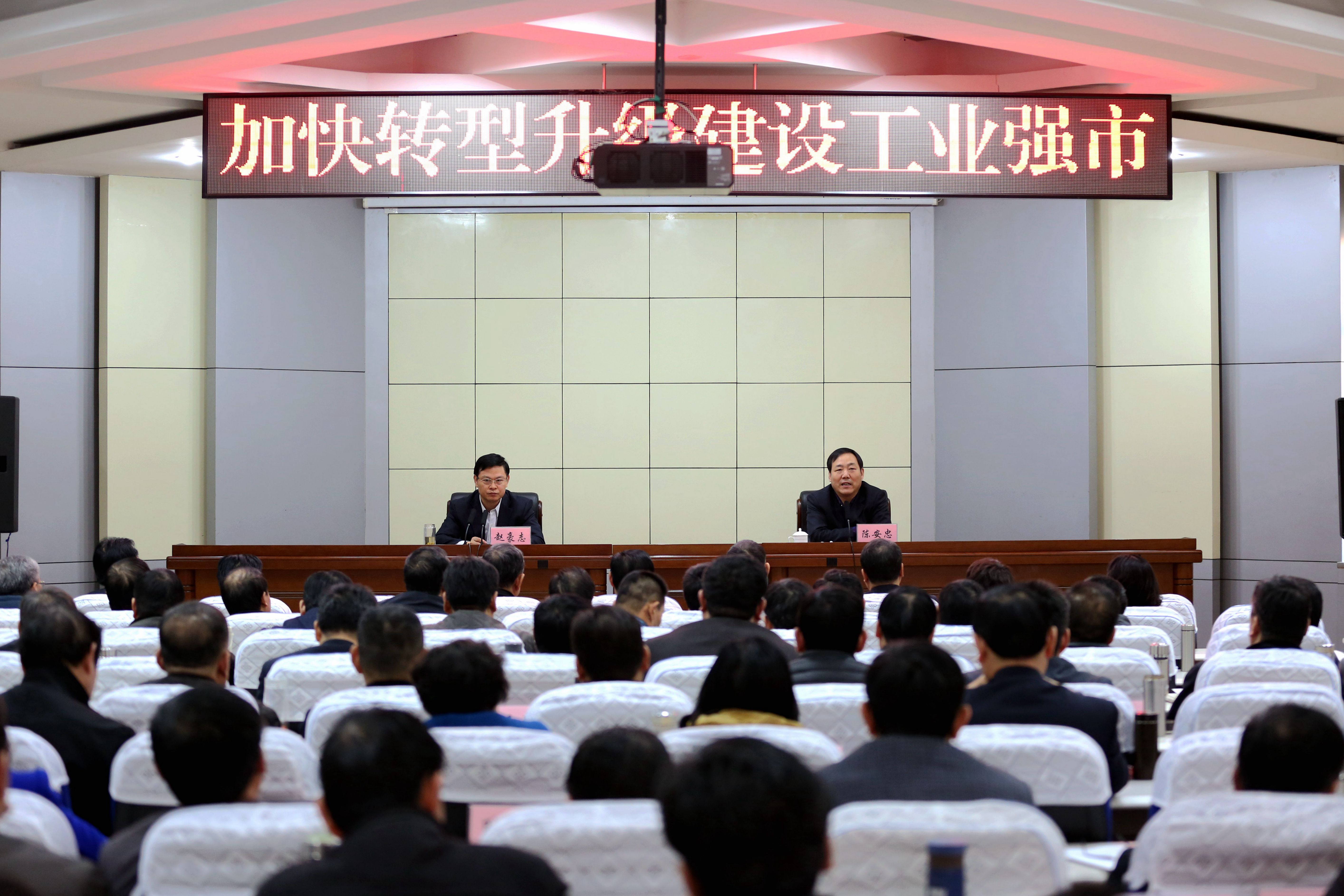 12月16日上午,市委副书记、市长赵豪志来我校作“加快转型升级,建设工业强市”专题辅导报告,常务副校长陈安忠主持报告会。