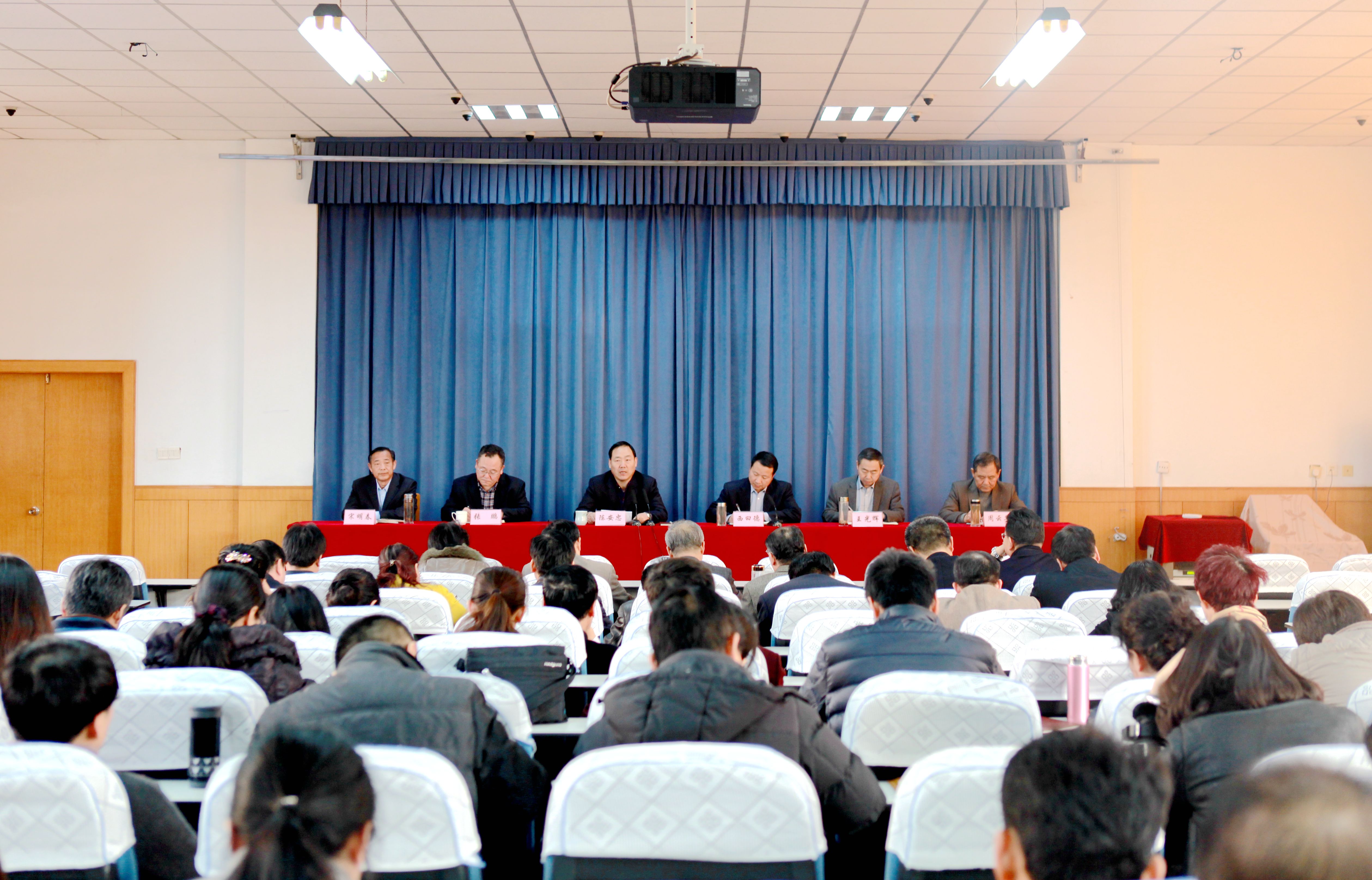 2月13日下午,我校召开2017学年工作部署会议。常务副校长陈安忠出席会议并讲话。副校长西曰德主持会议,副校长张鹏、王光辉,校务委员、工会主席宋明春,调研员周云华出席会议。