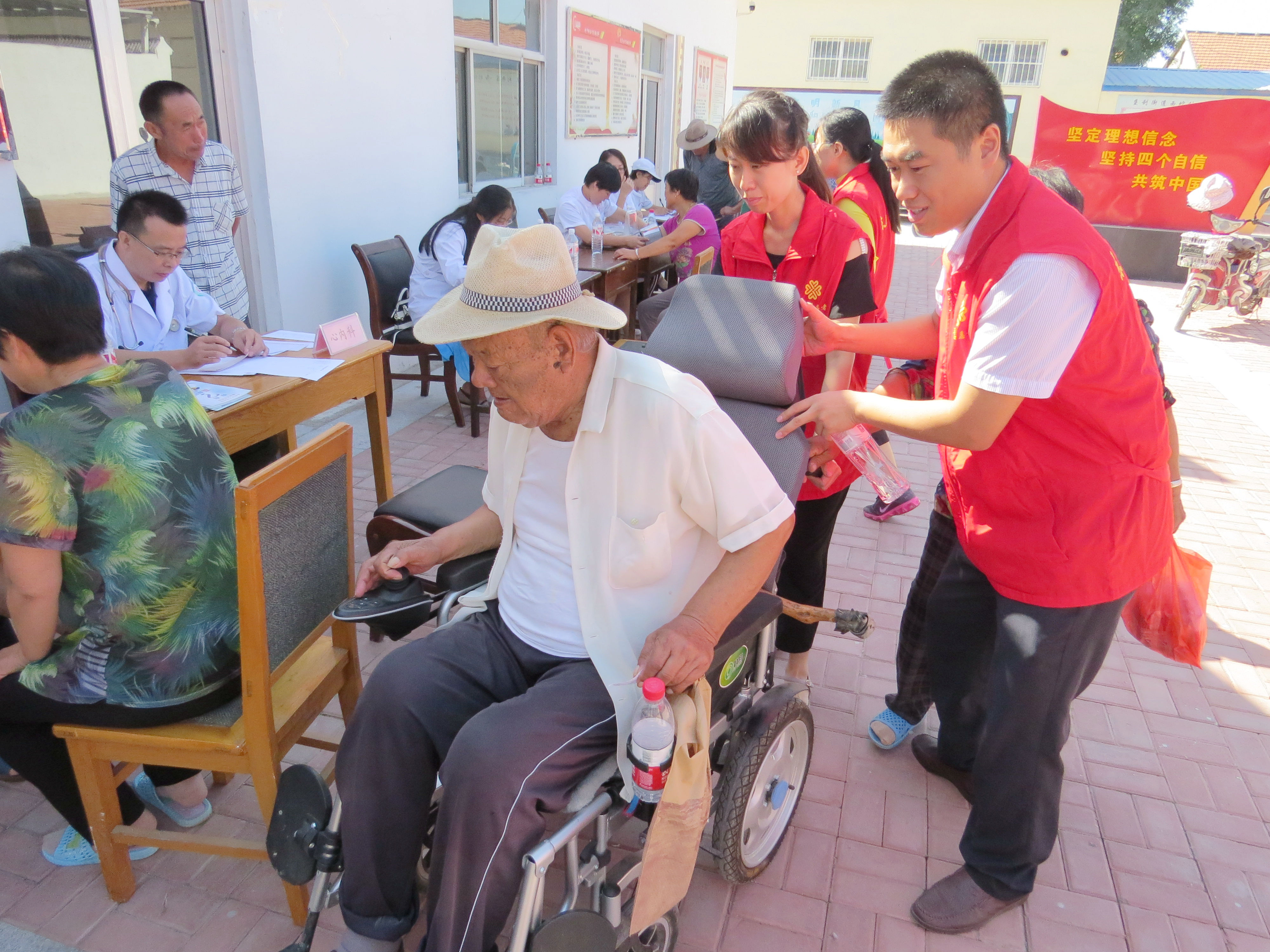 活动现场,市人民医院神经内科、心内科、外科、口腔科、皮肤科等科室的9名医疗专家,为本村及邻村的老人提供了血压和血糖测量、心电图检查等服务和内、外科疾病的现场诊疗,详细解答老人们提出的各种健康问题,对检查出的疾病开出服药处方和后续治疗指导,并发放了健康教育宣传资料和部分药品。青年教师志愿者在现场进行引导、搀扶等,帮助老人们有序安全诊疗。