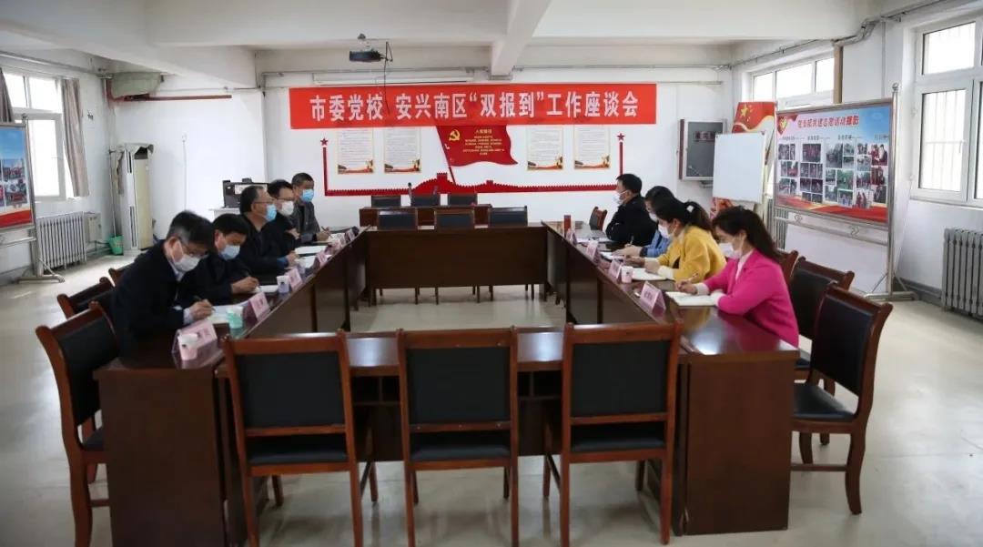 2020年3月31日下午市委党校副校长张鹏一行来到东城街道办事处安兴南区居委会,围绕如何开展党员“双报到”活动召开座谈会。全国人大代表、东城街道办事处兴盛社区书记黄小霞与安兴南区党支部支委成员参加活动。与会人员回顾总结了2019年市委党校到安兴南区参加党员“双报到”活动取得的成绩和心得体会,并结合各自优势对今年如何搞好党员“双报到”进行了展望。