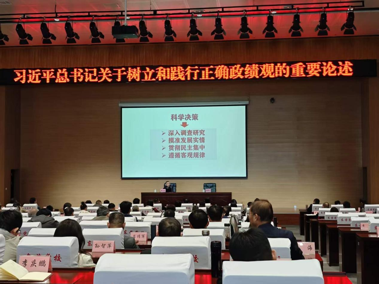 读书班充分依托党校教学资源,结合主体班次课程安排,以“专题辅导+集体学习研讨”的形式开展。4月22日上午,全体党员干部听取了政治理论教研室主任董文兵所作的《习近平总书记关于树立和践行正确政绩观的重要论述》专题辅导报告。4月22日下午,分组开展了集体学习研讨,重点学习了习近平总书记关于在全党开展树立和践行正确政绩观学习教育的重要指示、《习近平关于树立和践行正确政绩观论述摘编》、《习近平总书记地方工作期间坚持正确政绩观生动实践》,以及习近平总书记在党的二十届四中全会、中央经济工作会议上的重要讲话精神,并围绕学习内容进行了研讨交流。