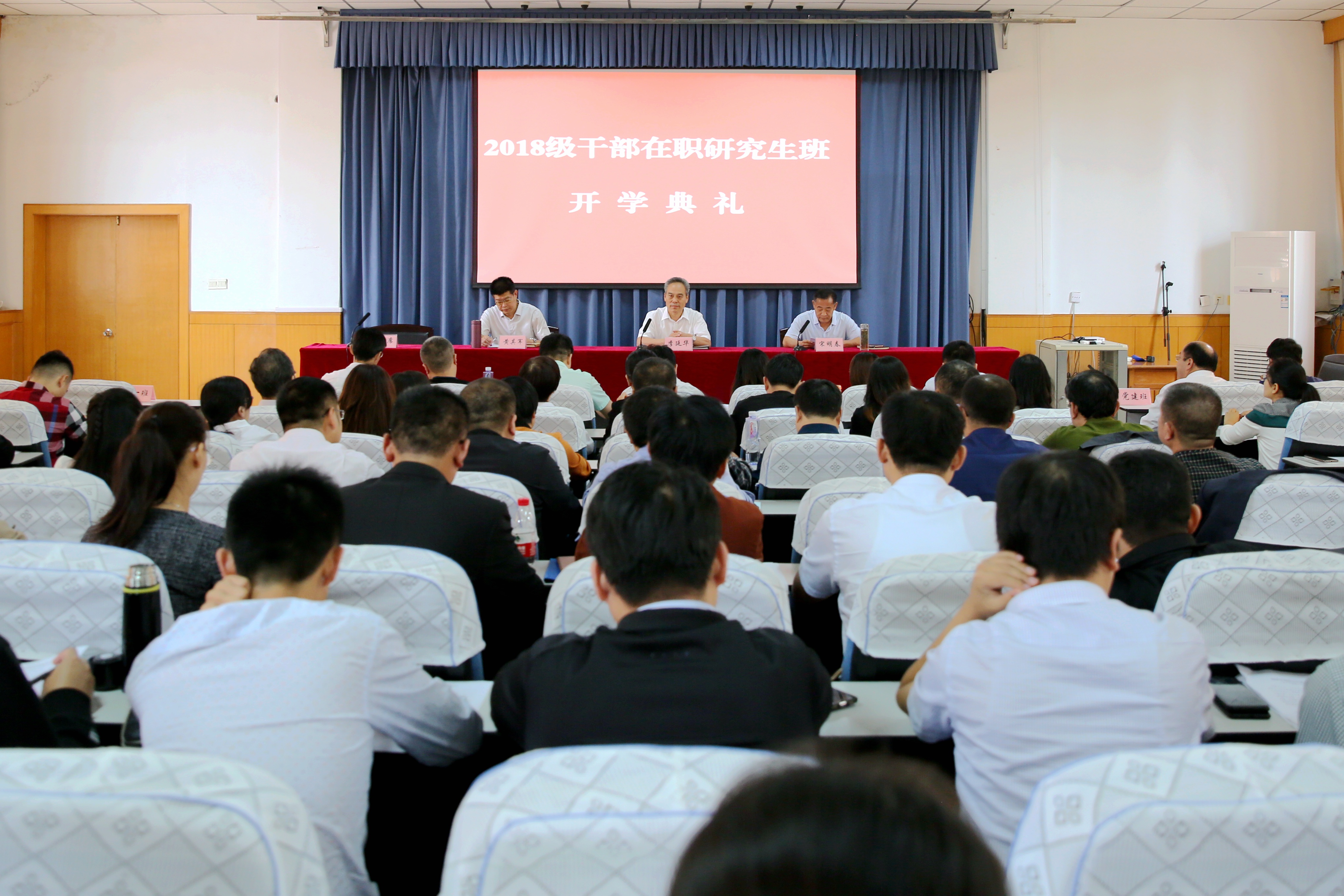 9月28日上午,省委党校2018级在职研究生班开学典礼在我校举行。常务副校长李廷华出席开学典礼并作重要讲话,校务委员、工会主席宋明春主持开学典礼。业教处有关负责同志及工作人员、授课教师代表、2018级在职研究生班经济管理和党建两个专业的86名学员参加了典礼。